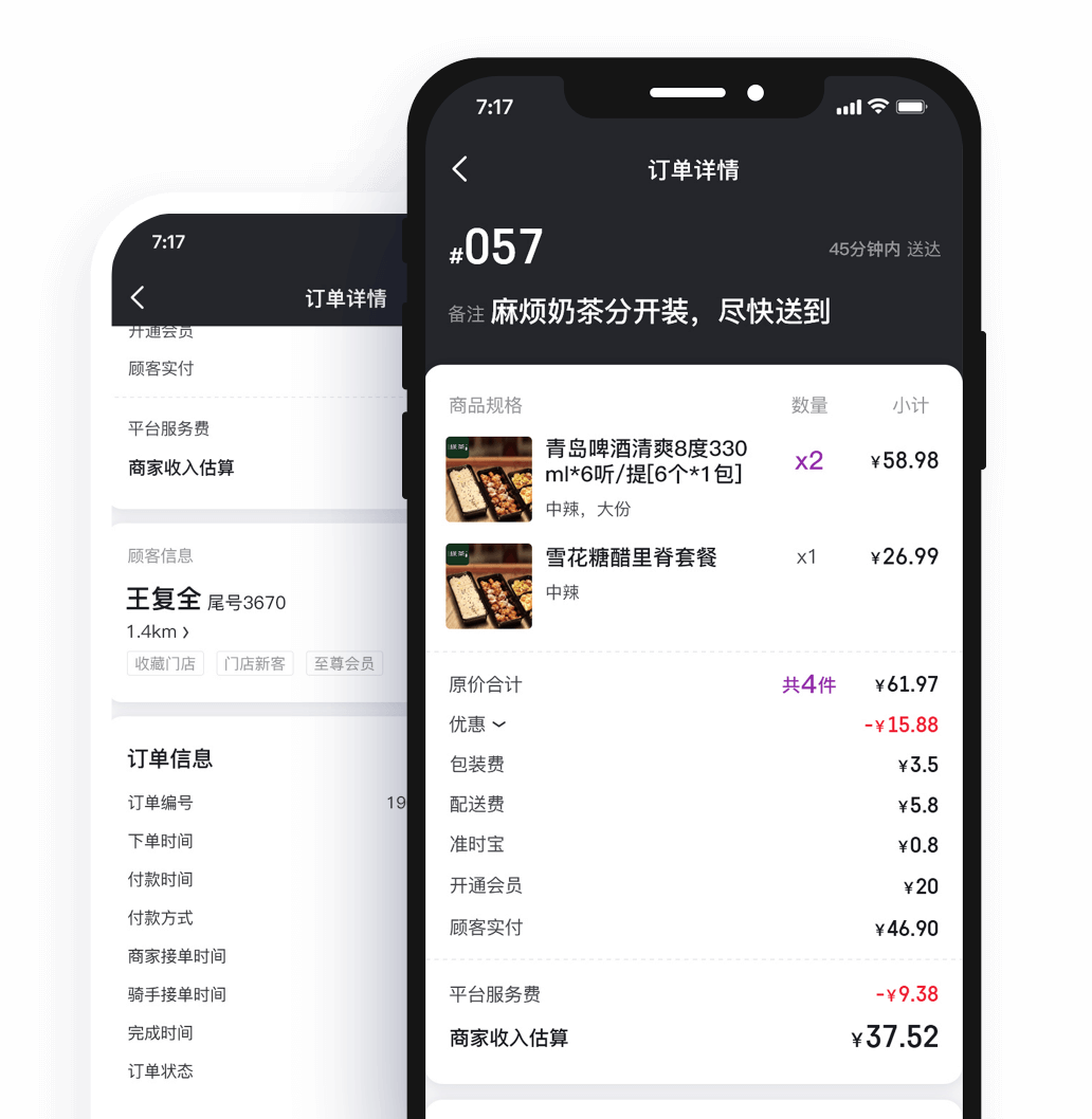 用手机在网上开餐厅,随时随地接订单。支持 iOS8 及安卓 5.0 以上系统